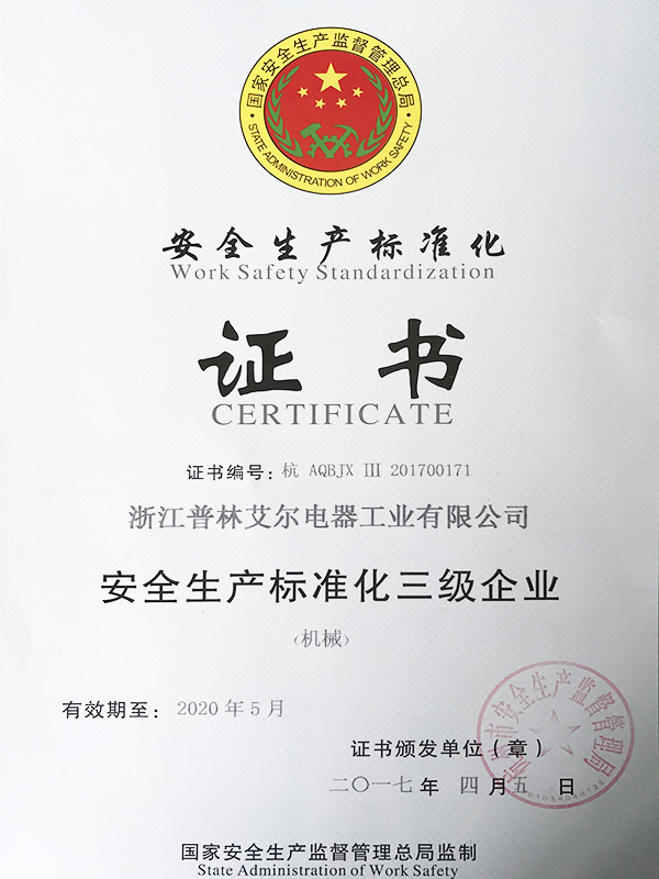 2017年安全生產(chǎn)標(biāo)準(zhǔn)化三級(jí)企業(yè)